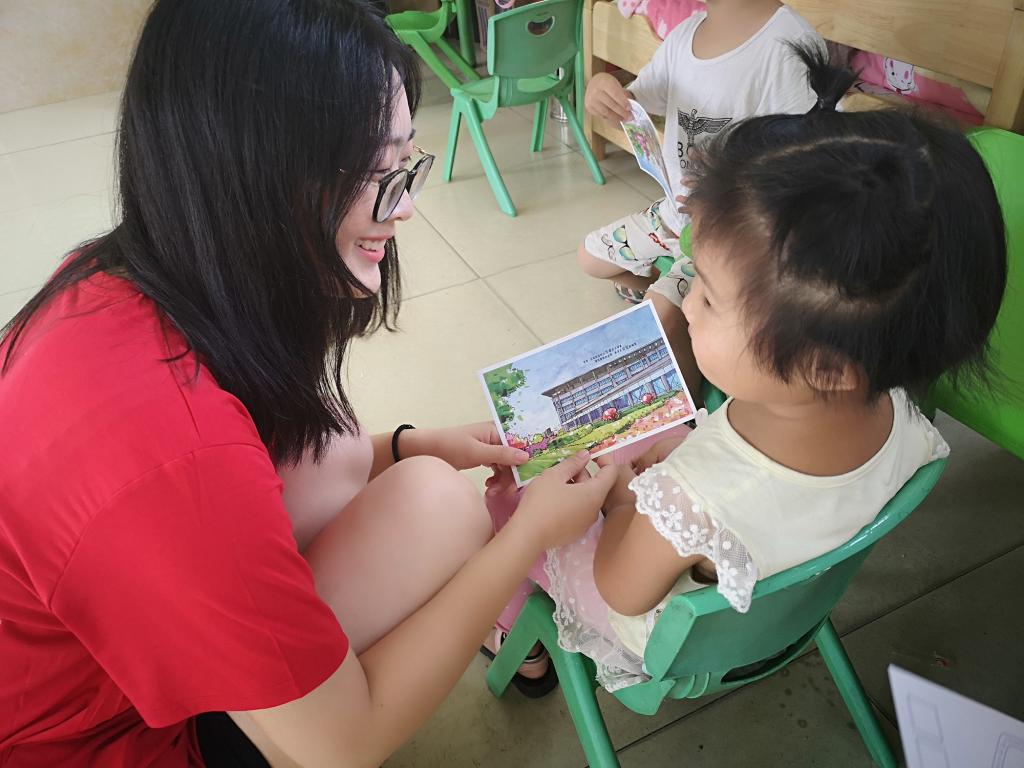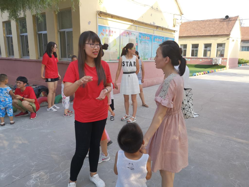 早八点,实践团队开始了一天的实践活动,在园内老师的配合下,完成孩子的饮食,教学等相关事宜,随后团队成员与园长共同讨论了孩子现行主要的问题,如留守儿童的心里健康状况,内向儿童的交往表达情况。针对这些孩子,实践队员组成一对一帮扶小组,更直观深入地了解孩子,并给予帮助。放学后,实践团队的各个成员与孩子们的家长进行了密切交谈,了解记录孩子们在家里的行为表现,进一步明确了对孩子们教育关爱的方向。