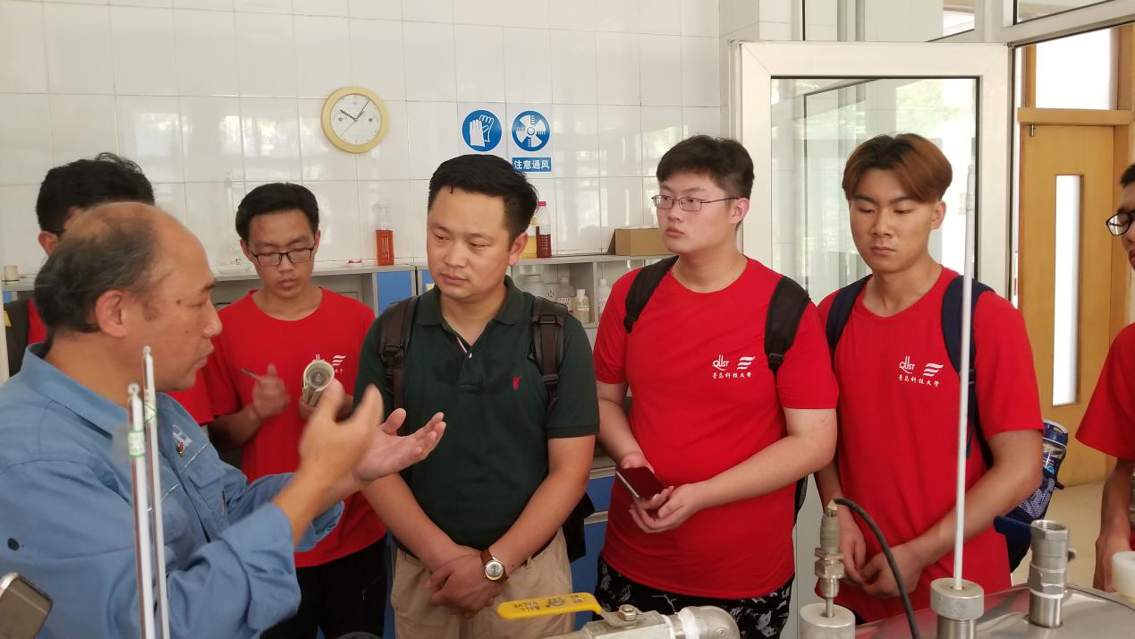 来到实验室之后,黄斌带领调研团观摩实验仪器。黄斌指出,循环水系统作为齐鲁石化的一个用水“大户”,自然少不了对于系统的监控及保护。而调研团参观的这套设备正是用来模拟整个循环水系统,并对整个水循环系统进行监控。黄斌就每一个设备的用途及名称都做了详细的介绍,并现场拿样品为调研团进行演示。在参观过程中,调研团的部分成员就其中不懂的地方对黄主任进行询问,并且黄主任对每位团员的问题进行了详细的讲解。